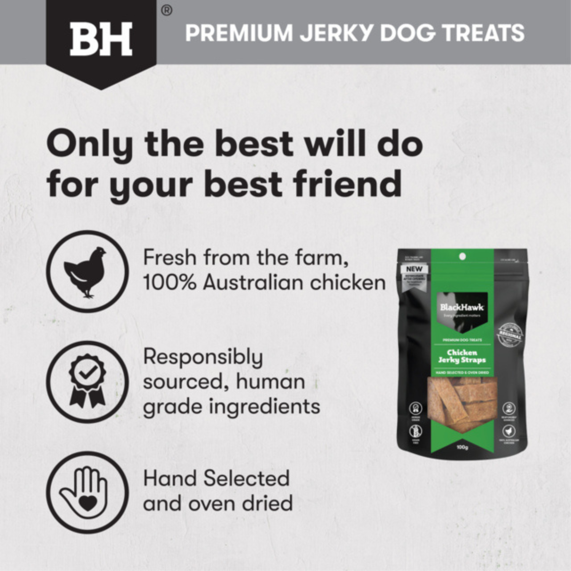 - Made from 100% Australian chicken breast.