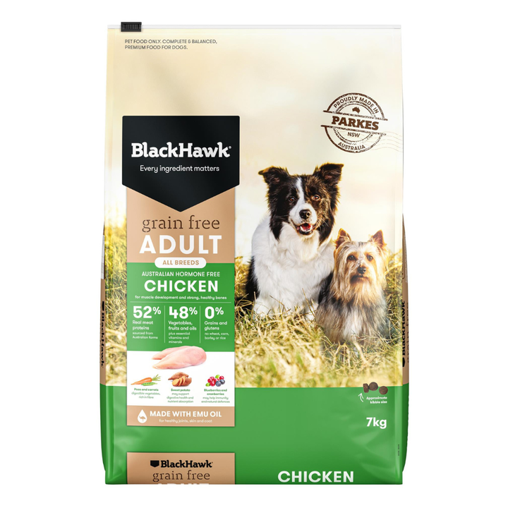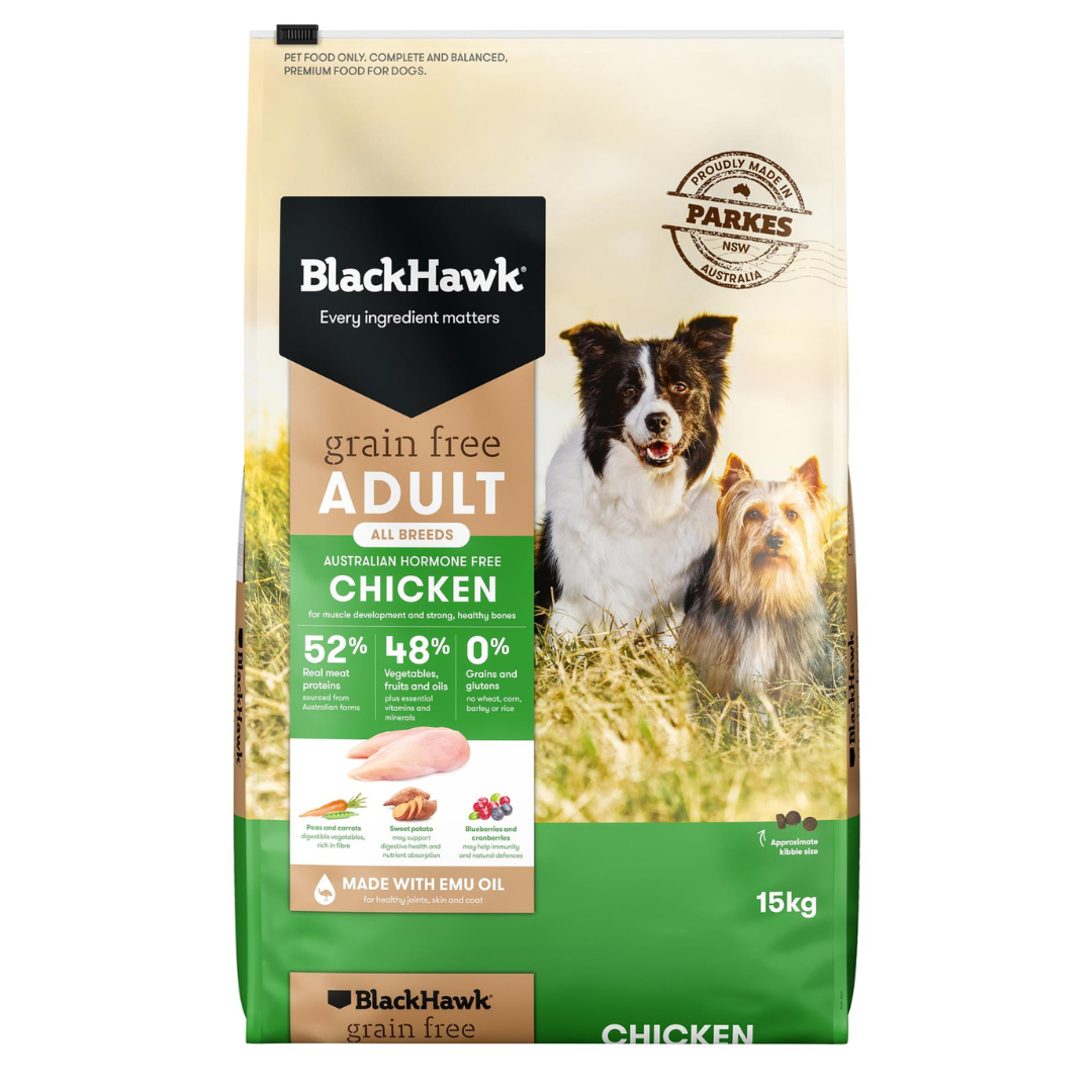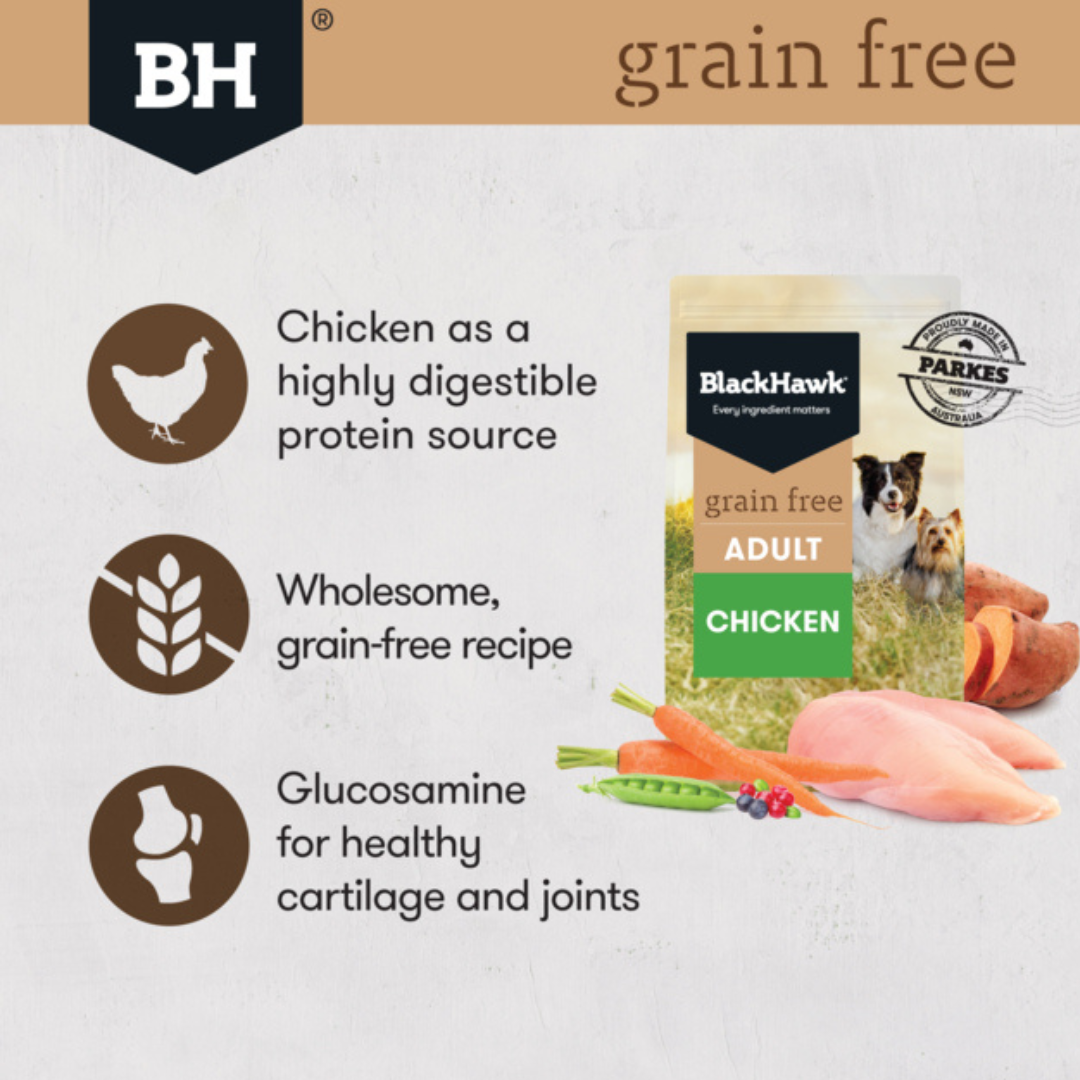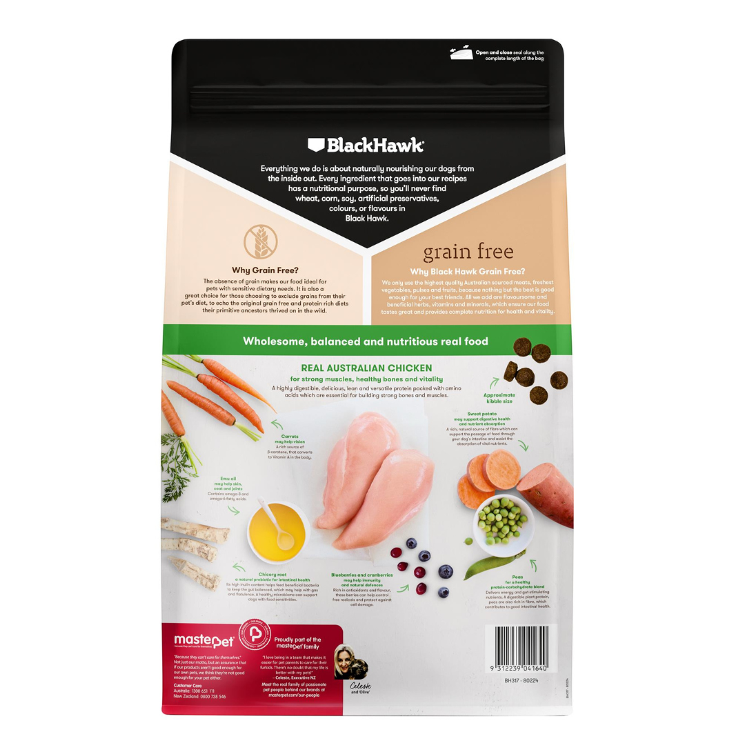 Black Hawk Grain Free Chicken Adult dog food is made with Australian chicken for strong muscles, healthy bones and vitality.