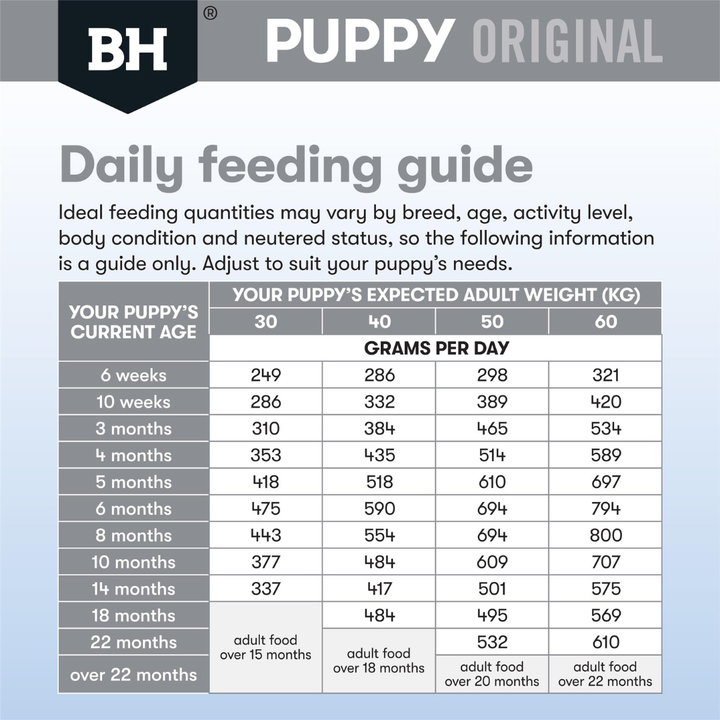 Adjust to suit your puppy's needs. 1 Metric Cup = Approximately 125g