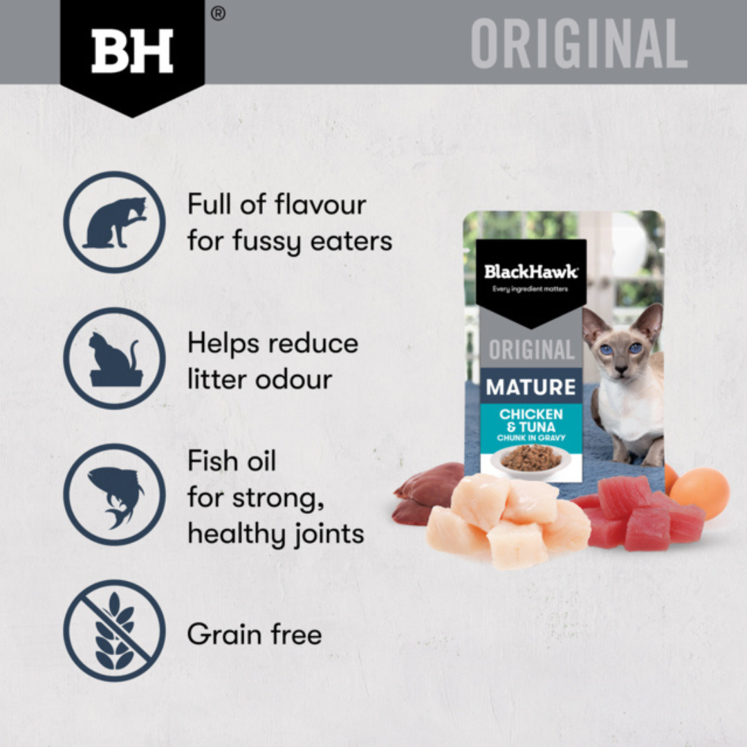 Black Hawk Original Mature Chicken & Tuna Chunks in Gravy Wet Cat Food