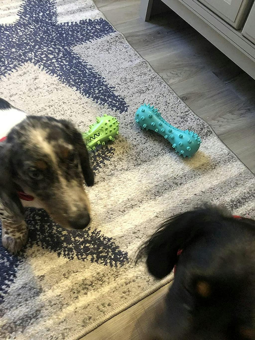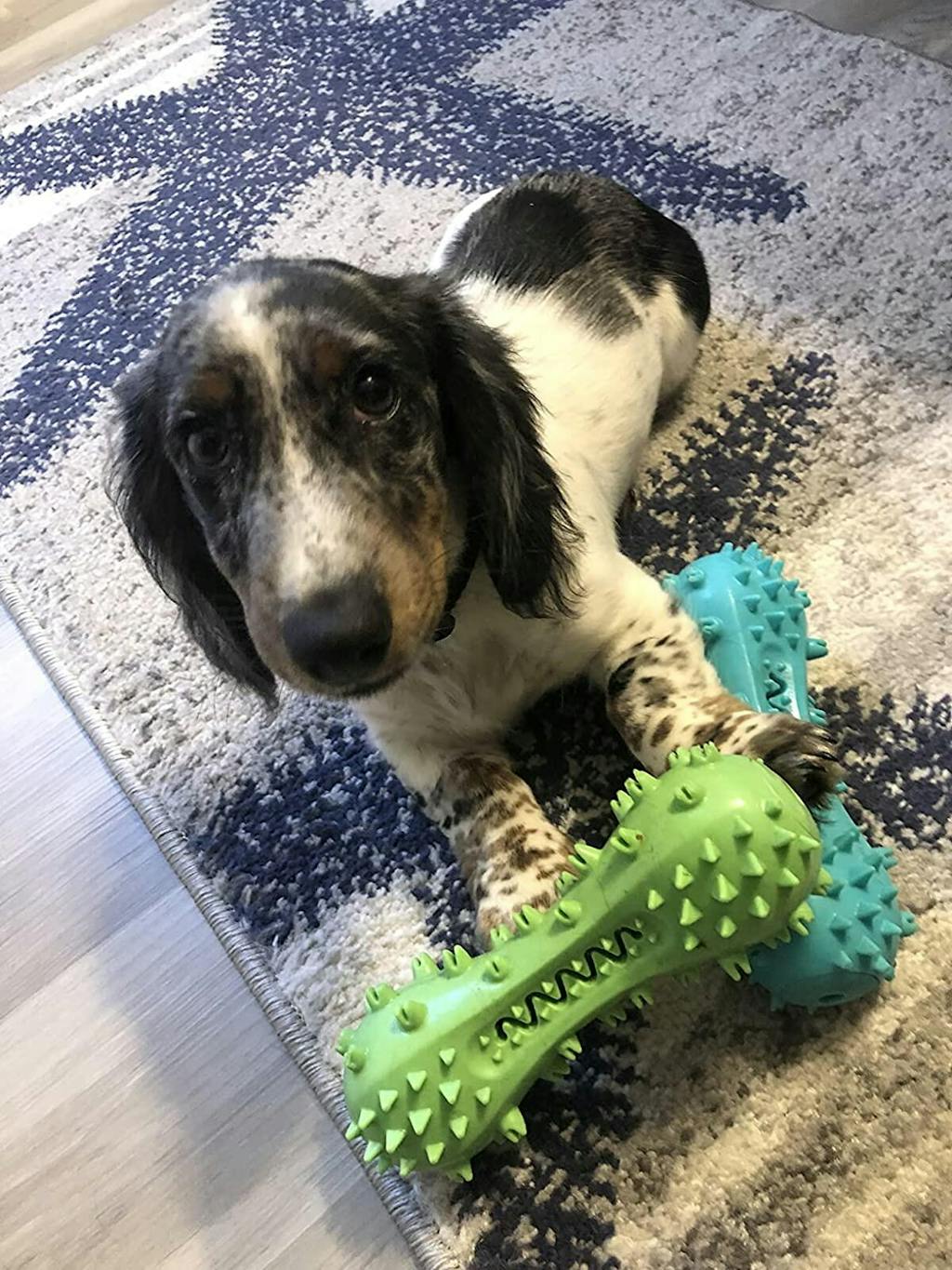 Dog Chew Toy - Squeaky Toothbrush Durable Rubber Toys for Teeth Cleaning