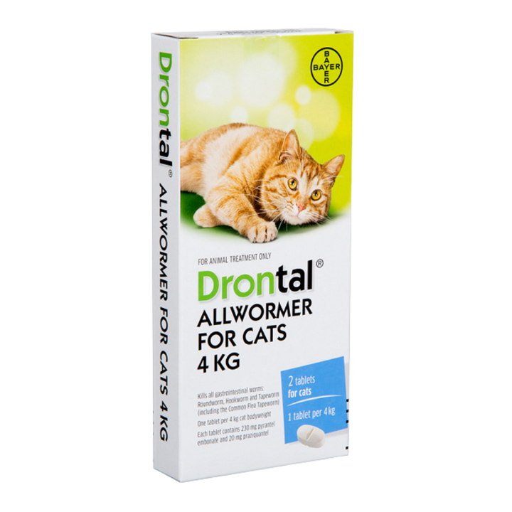 Drontal Allwormer for cats is recommended by veterinarians to control all intestinal worms in cats, from kitten lifestage to adult. Just one tablet per 6 kg every 3 months for adult cats is all it takes to keep worms under control in most adult cats.